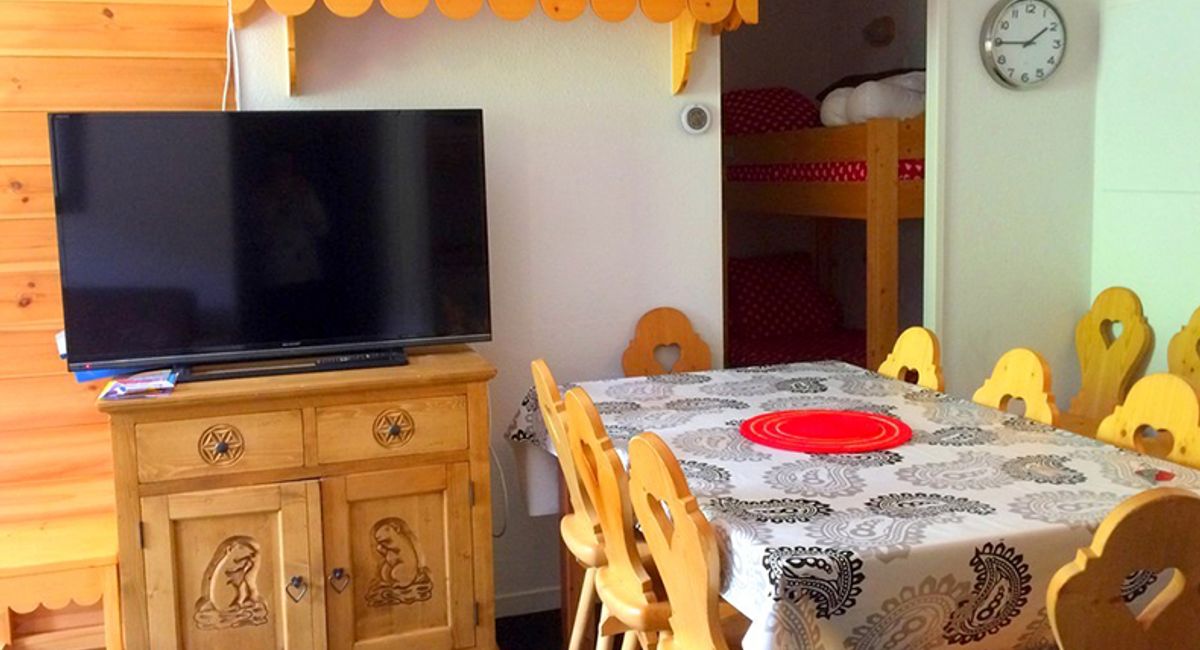 Un séjour avec 1 canapé 2 places ou 2 lits gigognes, une chambre avec 2 couchages, un coin montagne avec 2 lits simples ou 2 lits superposés.
